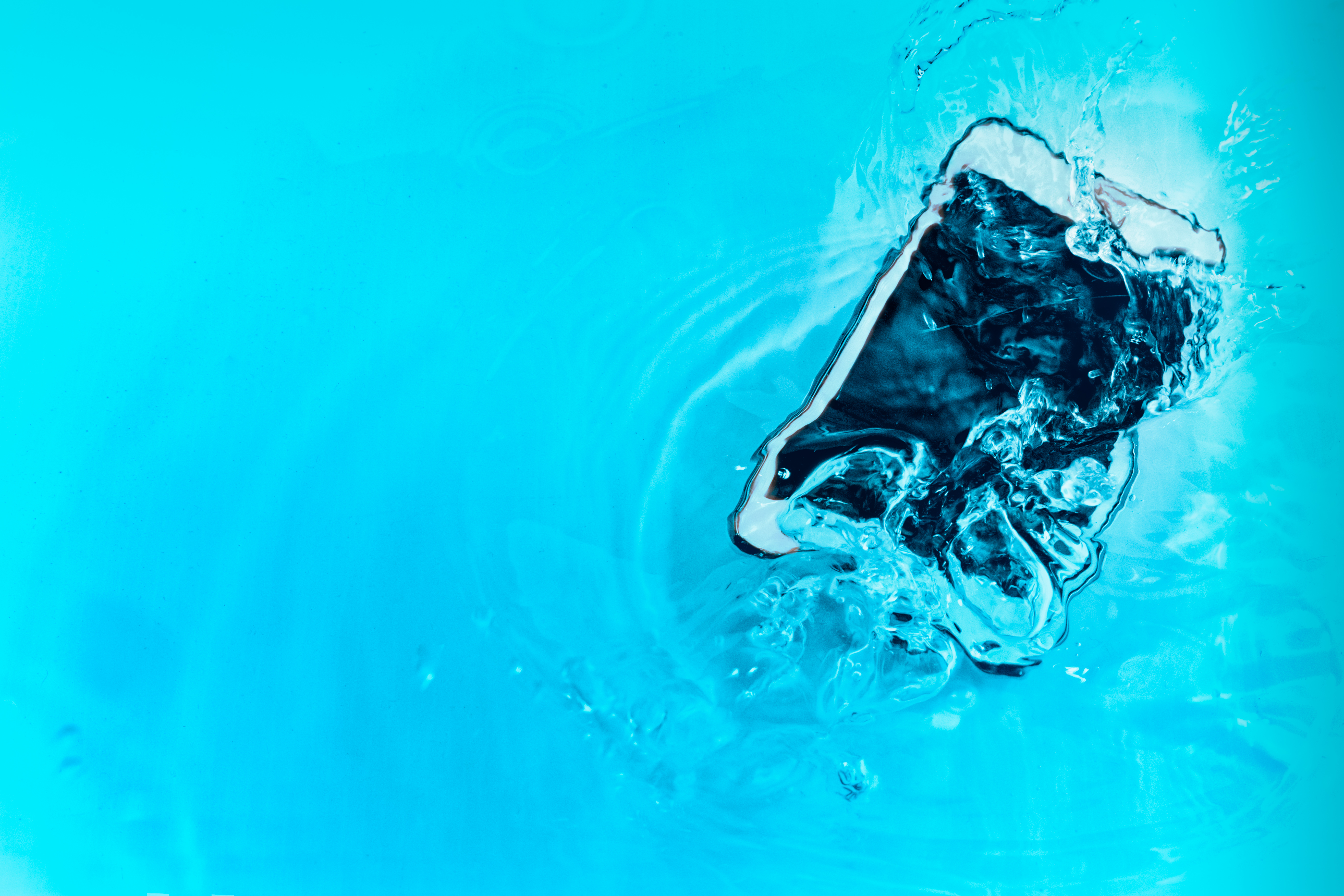 お風呂やトイレへの落下、洗濯機での水没などにより、本体がショートし電源が入らなくなる症例。